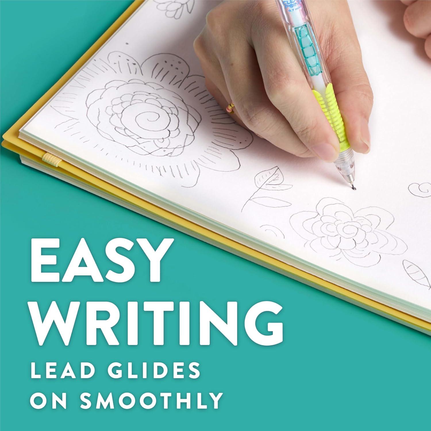 Experience break resistant lead that glides on smoothly with Paper Mate Clearpoint mechanical pencils! Featuring a convenient side-click advance mechanism on the barrel, you’ll be able to load your pencil lead without losing your grasp or slowing down. The textured grip provides comfort and control during long writing sessions, while the jumbo twist-up eraser lets you easily correct mistakes without any smudges or tearing. As a bonus, this collection of #2 pencils features bright new colors in a fun Color Block design to add a blast of joy to your writing. With the feel of a pen and the performance of a pencil, Paper Mate Clearpoint pencils are great for a variety of writing and art uses!
