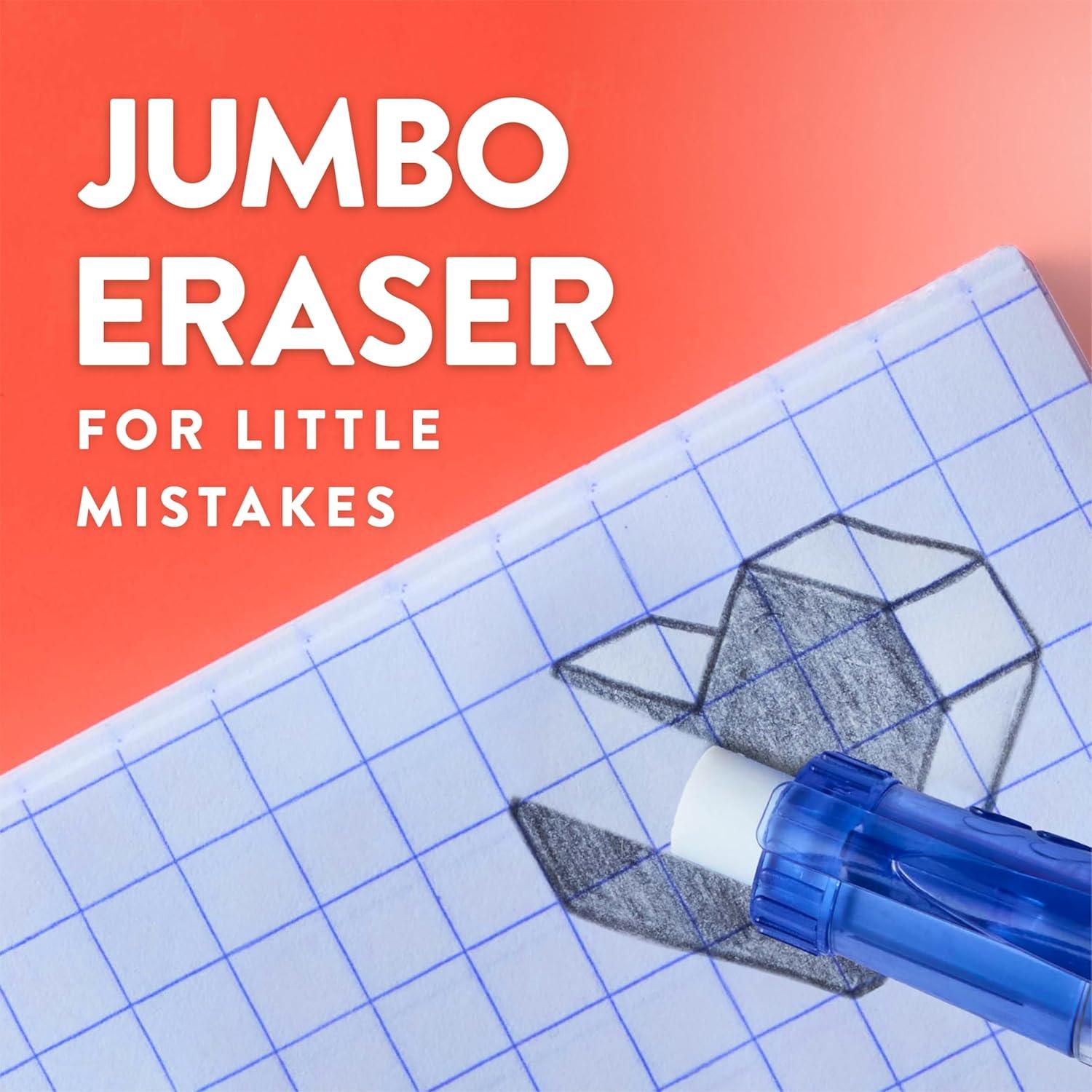 Jumbo twist-up eraser cleanly and easily erases mistakes from the page